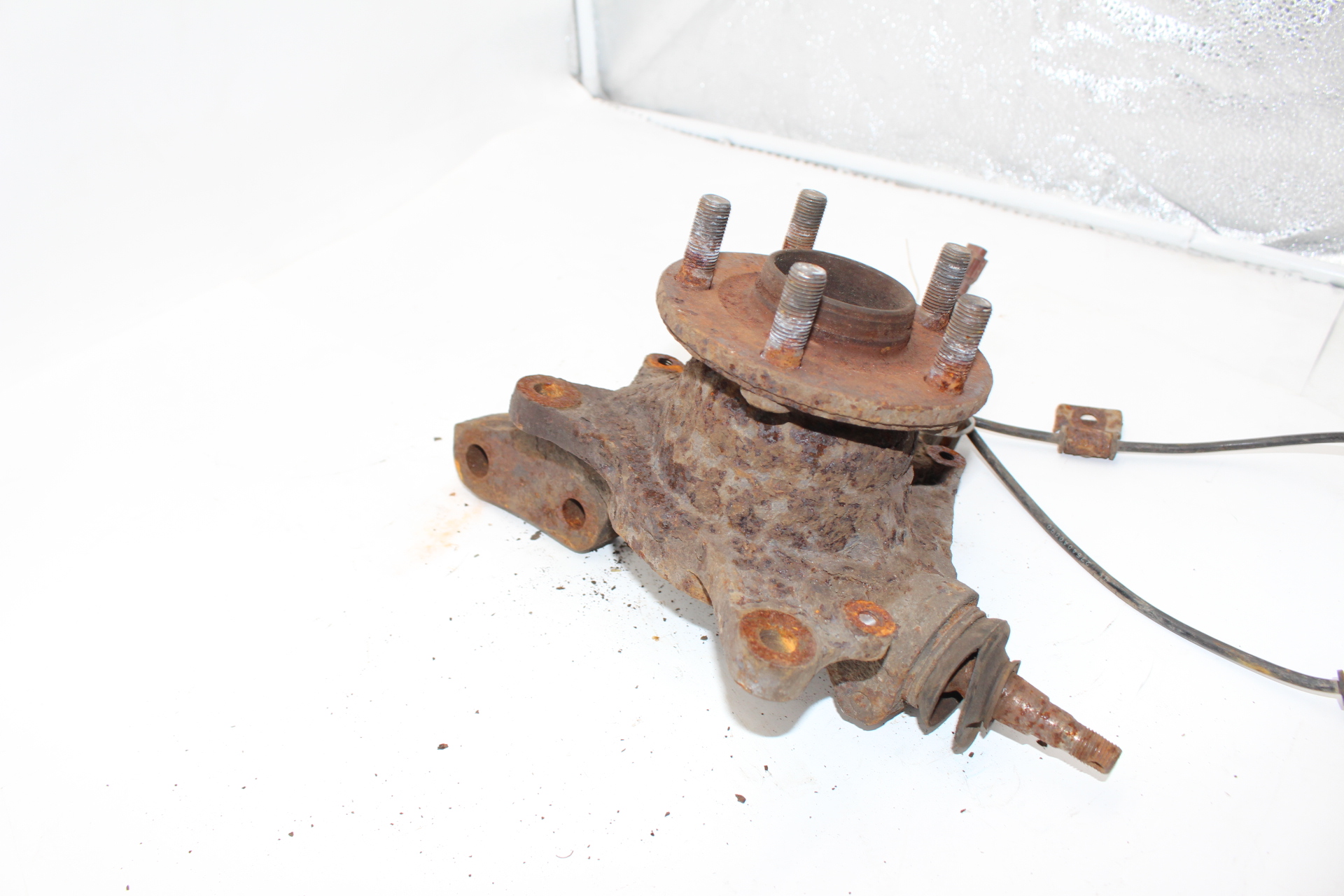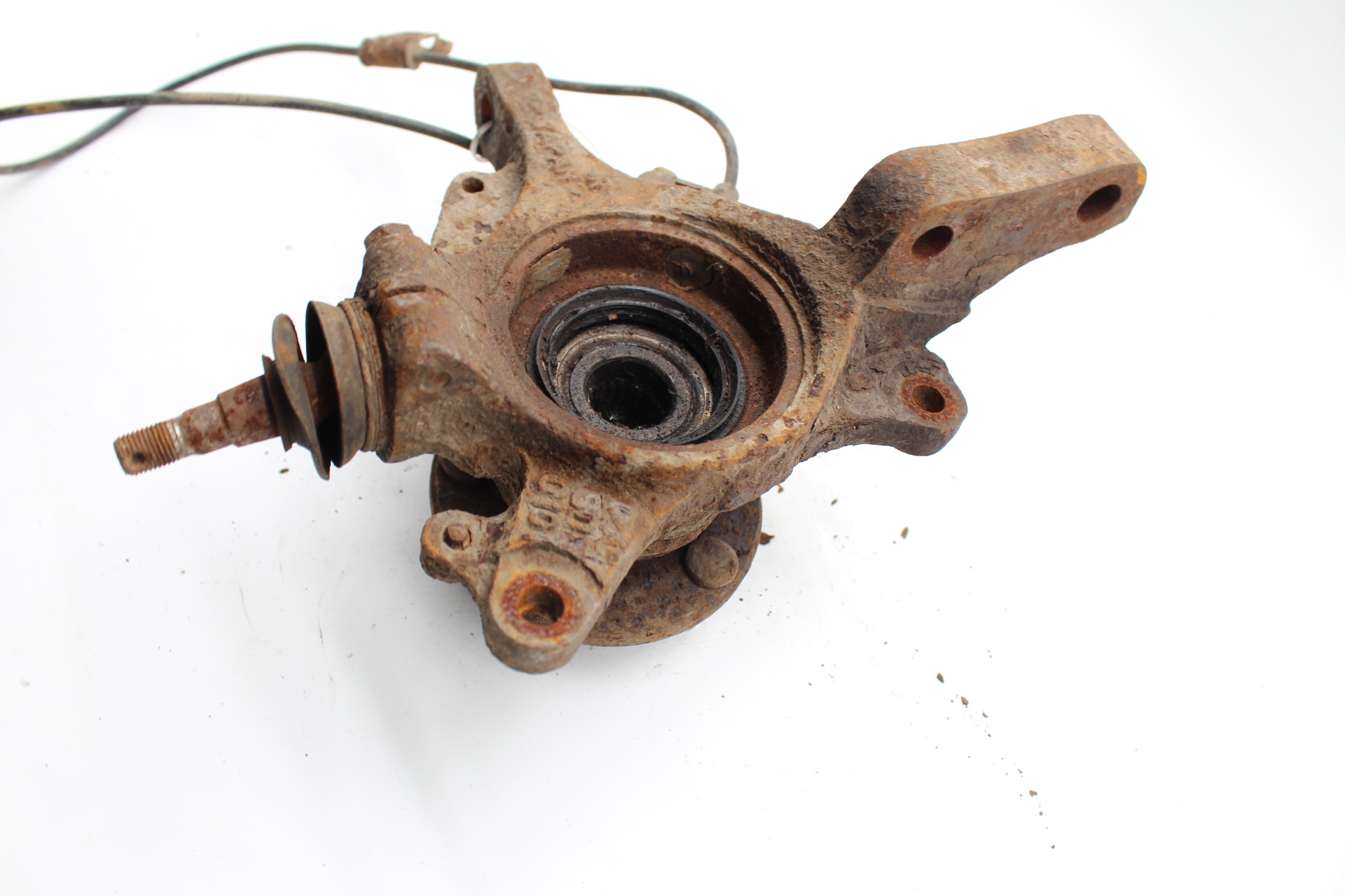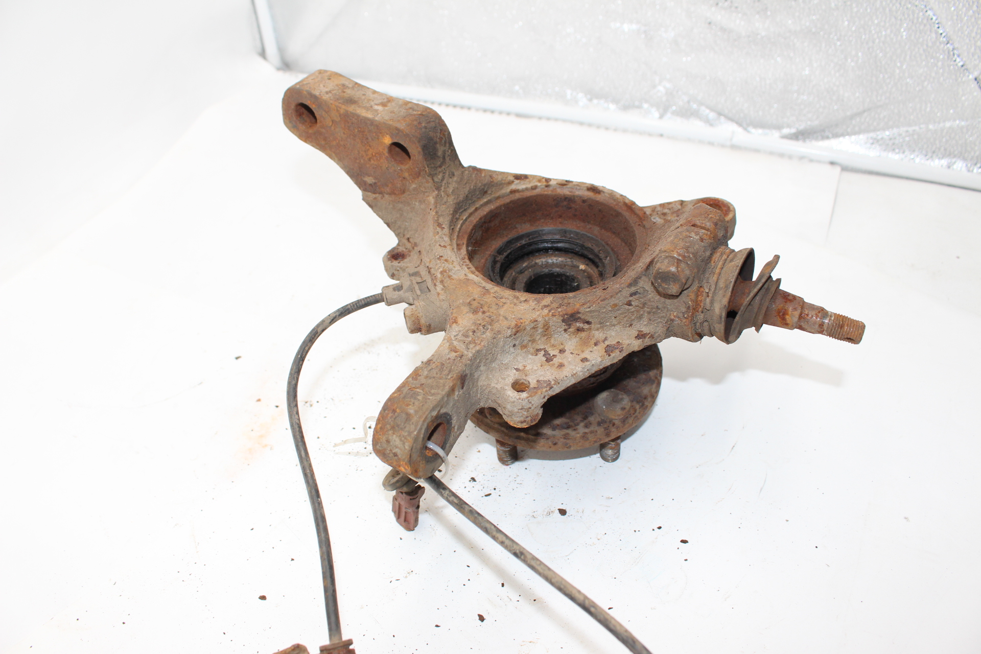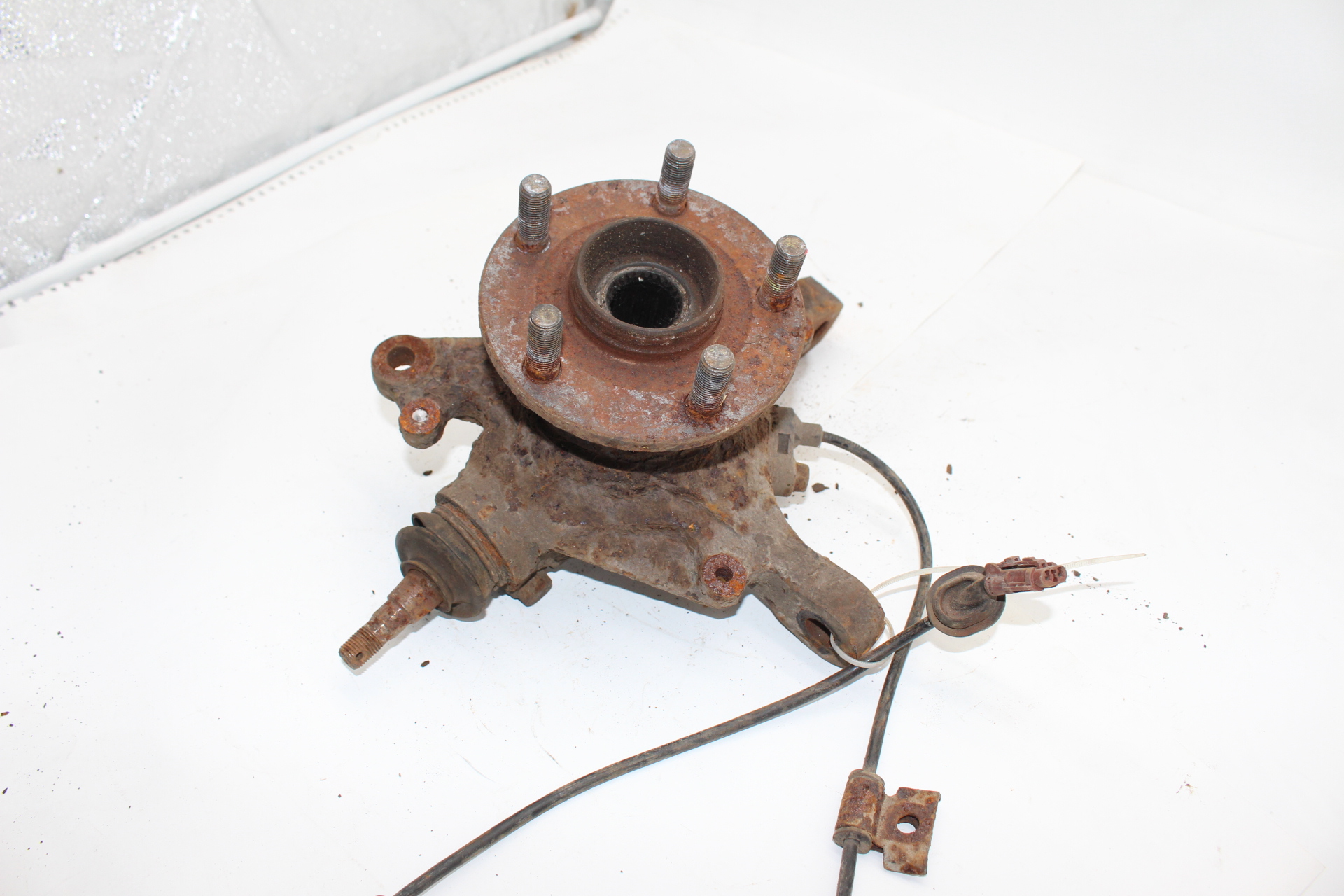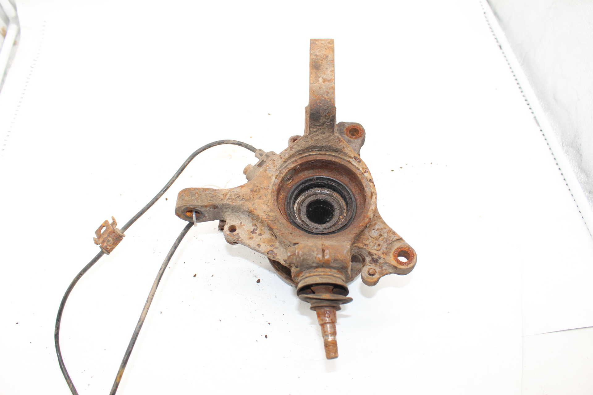 Gebrauchter original Achsschenkel (Radlagergehäuse) vorne links inklusive Radnabe und ABS-Sensor, passend für Subaru Impreza GD / GG (Baujahre 2001–2007).