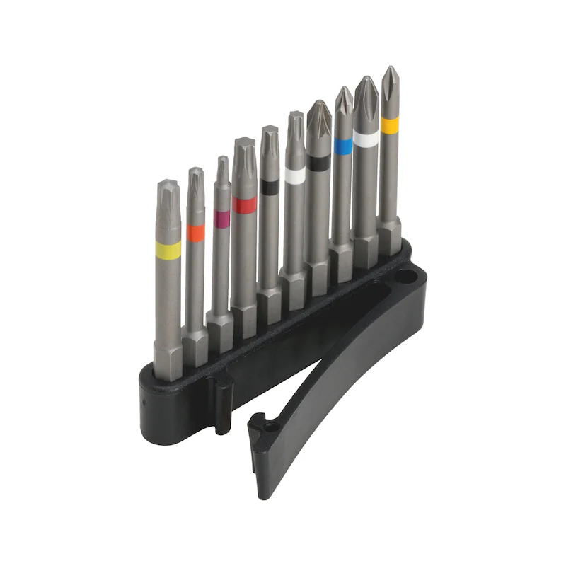 Alle Bits verfügen über den genormten 1/4-Zoll-Antrieb (E 6,3) und sind kompatibel mit gängigen Bithaltern, Schraubendrehern und Akkuschraubern.
