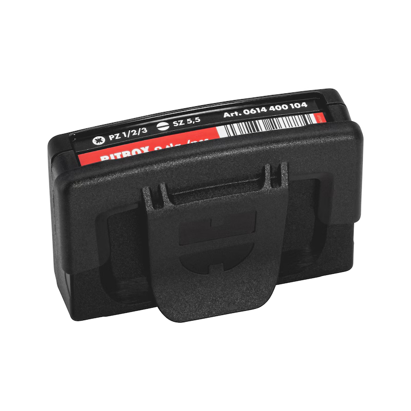 Die Würth Bitbox Größe 1 ist ein kompakt bestücktes Bitsortiment mit PZ und Schlitz Abtrieb inklusive magnetischem Bithalter. Sie eignet sich ideal für Montageeinsätze, Servicearbeiten und den mobilen Einsatz. Dank des integrierten Bitriegels richtet sich dieser beim Öffnen der Box automatisch auf und ermöglicht eine schnelle und komfortable Entnahme der Bits.