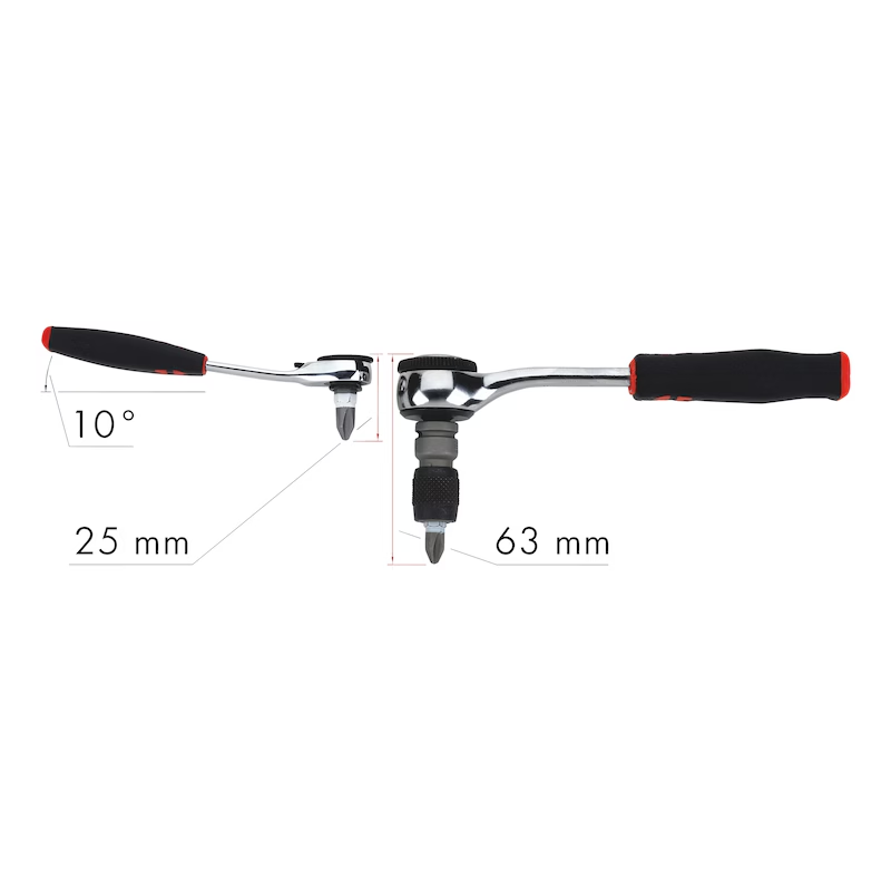 Sehr flache Bit-Knarre mit geringem Arbeitswinkel