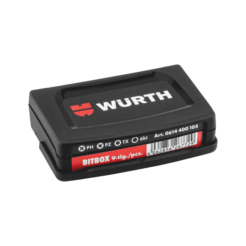 Produktinformationen "Würth ORSY Bitbox Größe 1 PH / PZ / TX / Innensechskant mit Bithalter – 9-teilig"