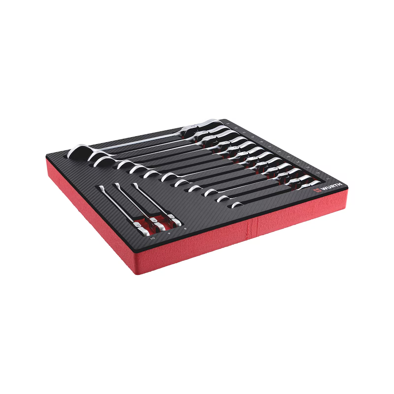 Produktinformationen "Würth ORSY System-Einlage Ratschenringmaulschlüssel flexibel 15-tlg POWERDRIV Carbon 0965905470"