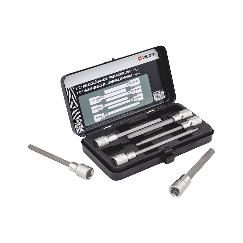 Würth Steckschlüsselsatz 1/2 Zoll Innensechskant lang 6 teilig Metallkassette ZEBRA Profi