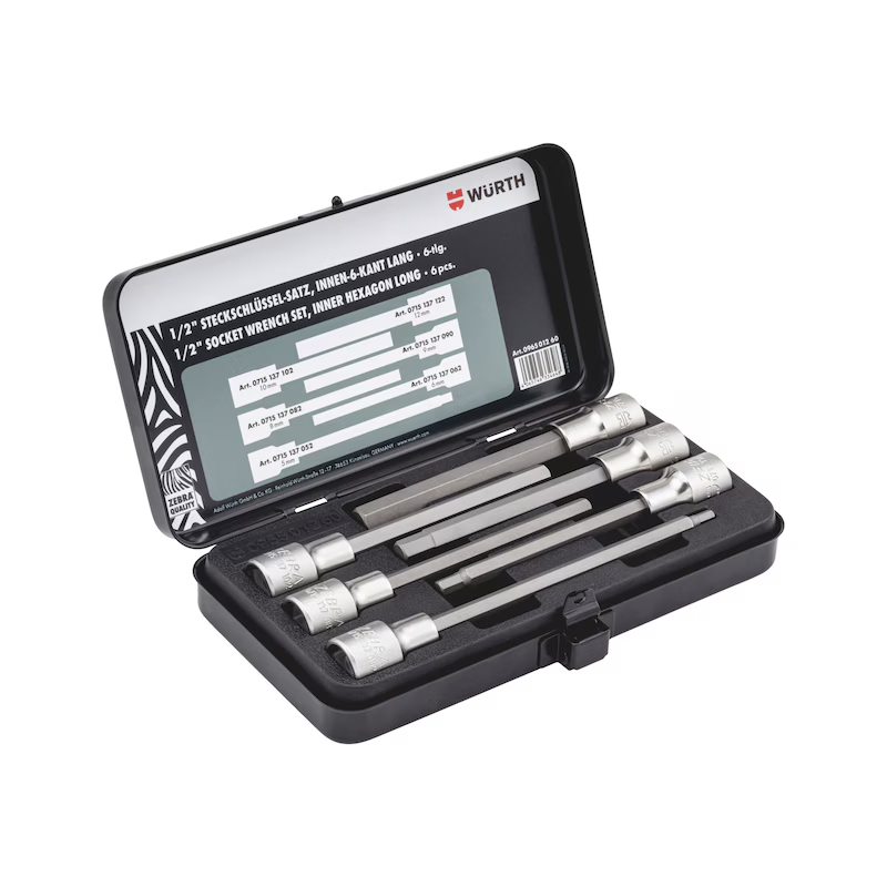 Produktinformationen "Würth Steckschlüsselsatz 1/2 Zoll Innensechskant lang 6 teilig Metallkassette ZEBRA Profi"