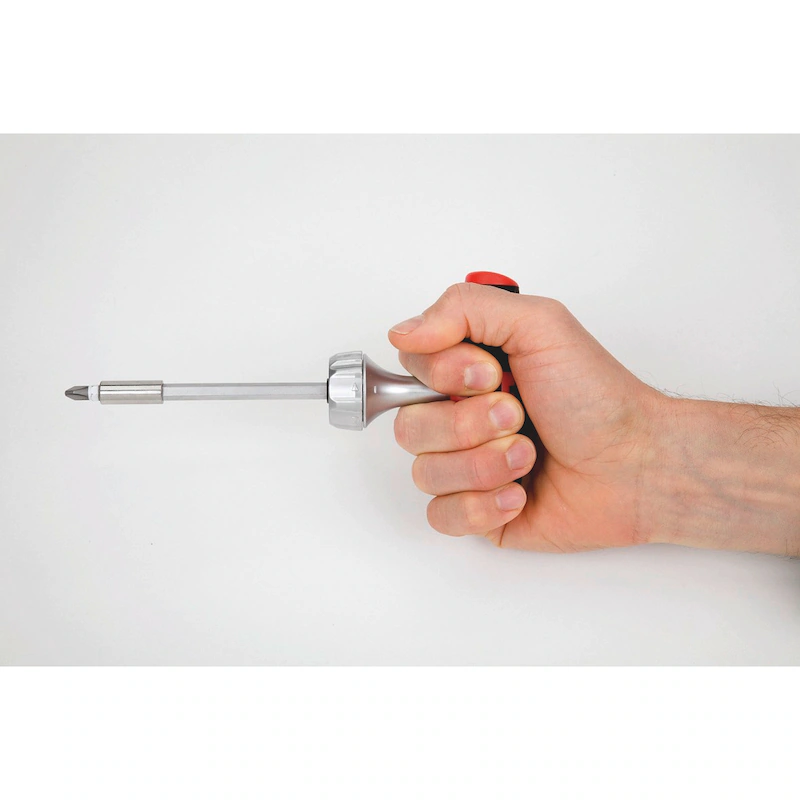 Der Schraubendreher kann als klassischer T Griff, als leistungsstarker Ratschenschraubendreher sowie mit Umsteck und Adapterklingen oder Steckschlüsseleinsätzen verwendet werden. Damit vereint das Set mehrere Werkzeuge in einem System und deckt eine Vielzahl von Anwendungen ab. Die Ratsche ist sehr robust ausgeführt und erlaubt ein maximales Drehmoment von bis zu 40 Nm.