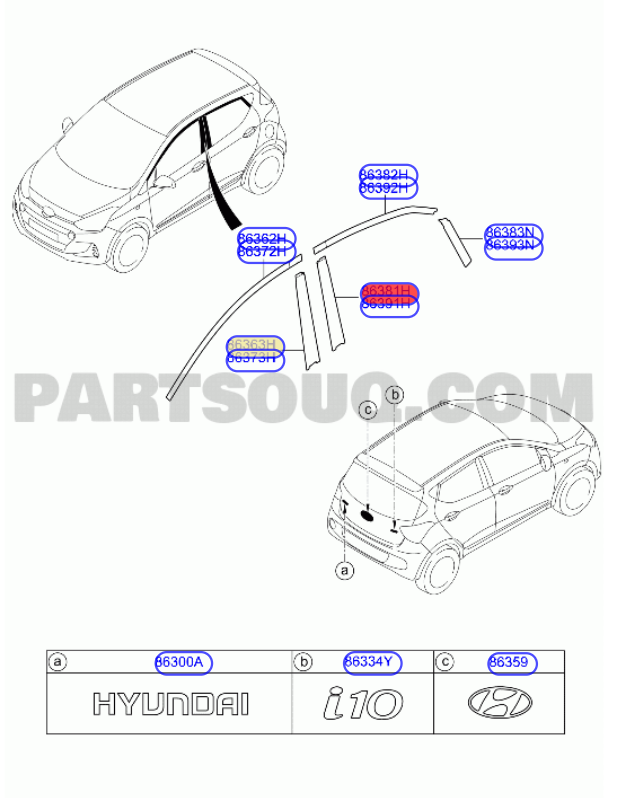 Zierfolie Türrahmen hinten links vorne Hyundai i10 – 86381B9000