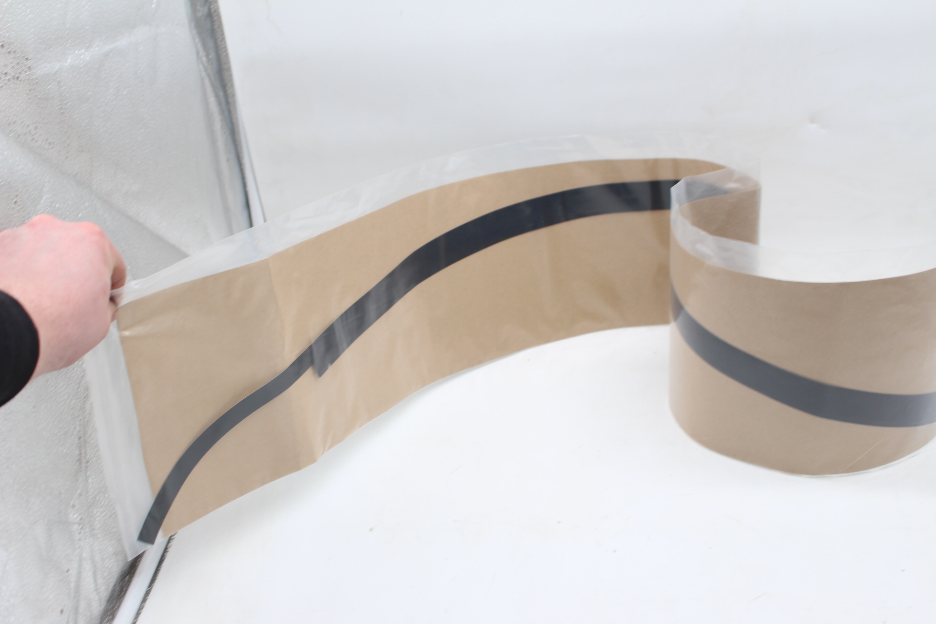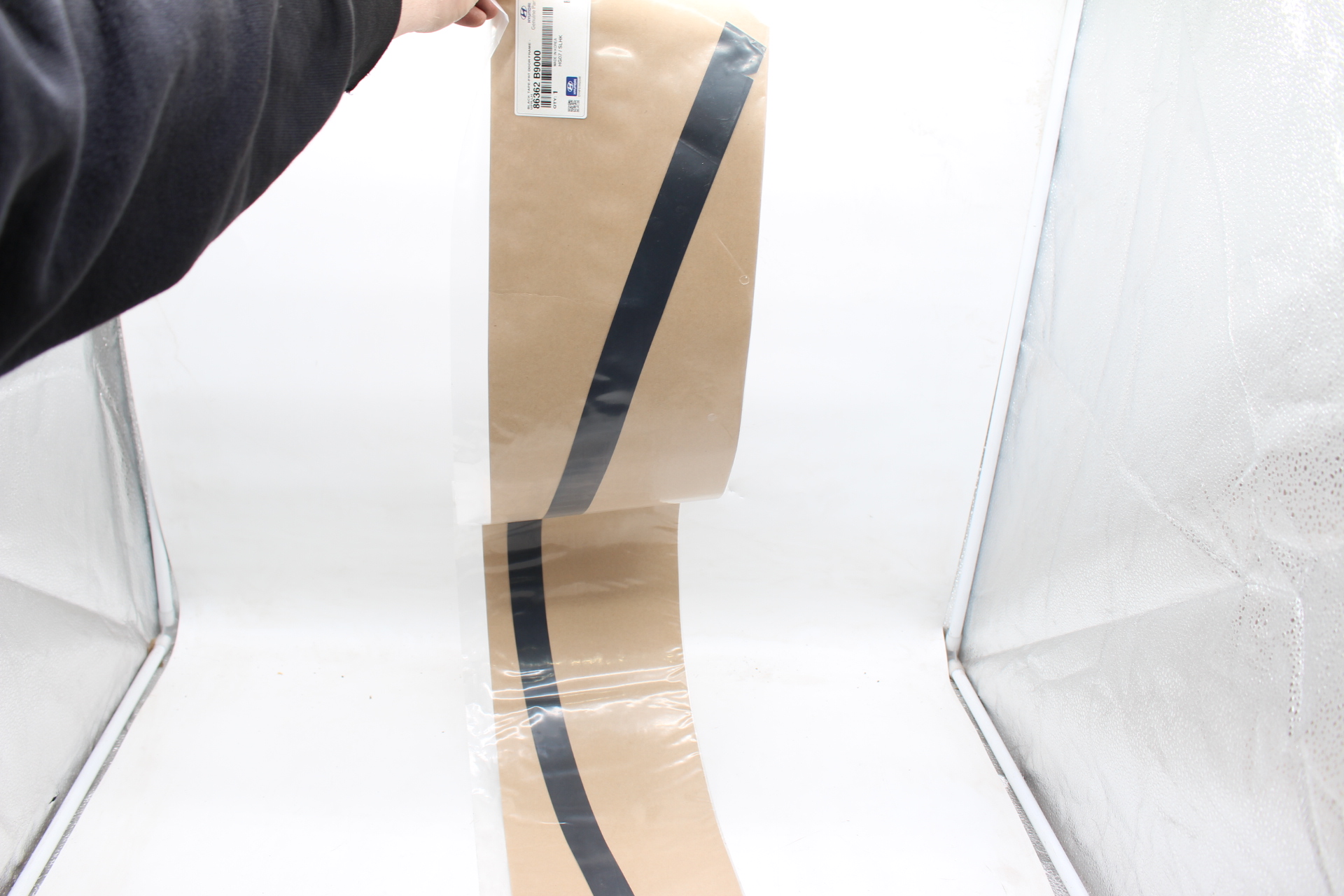 Schwarze Abdeckfolie / Zierband für den oberen Türrahmen vorne links.