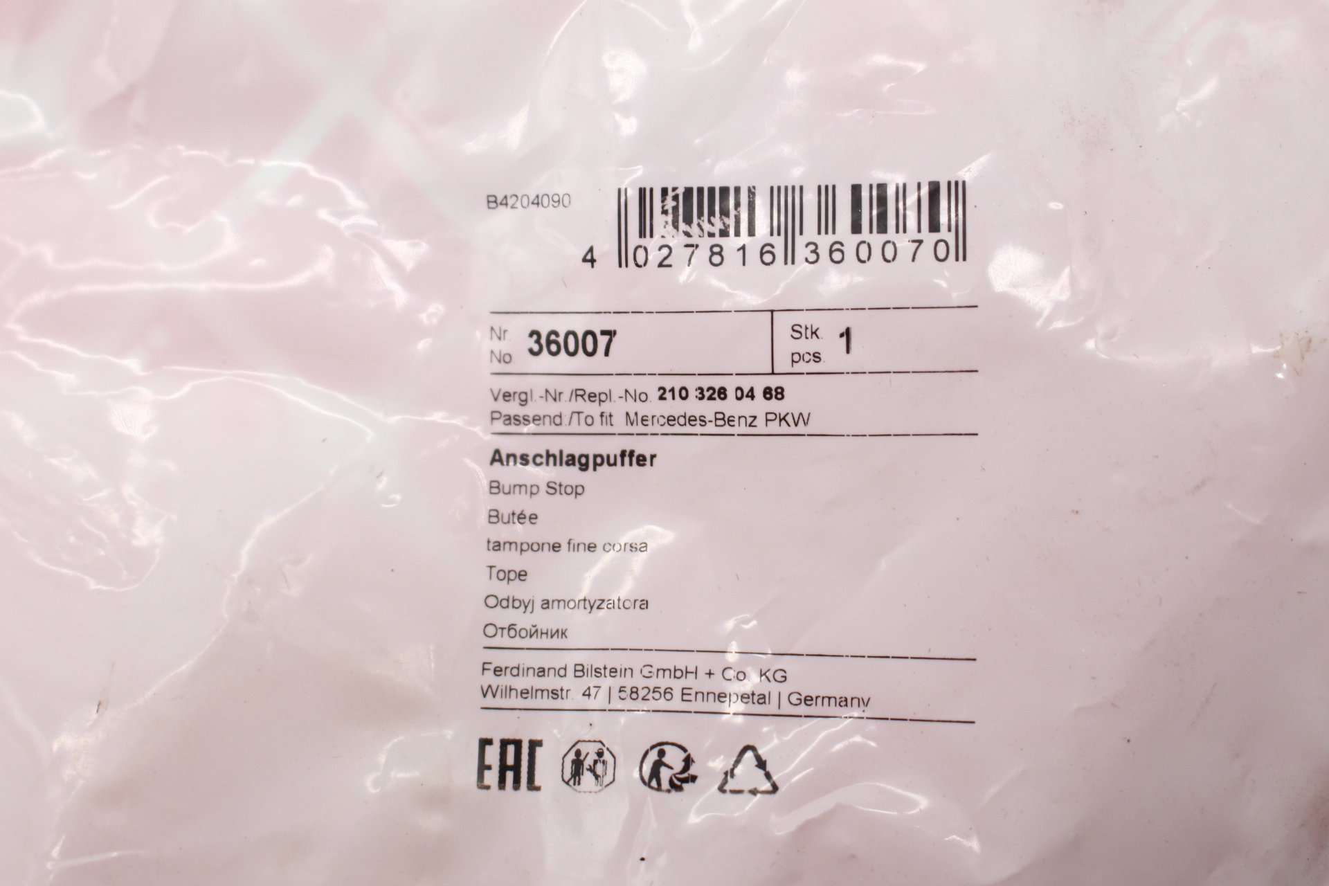 Produktinformationen "febi 36007 Anschlagpuffer Gummianschlag für MERCEDES C219 W210 W211 S210 S211 2103260468"